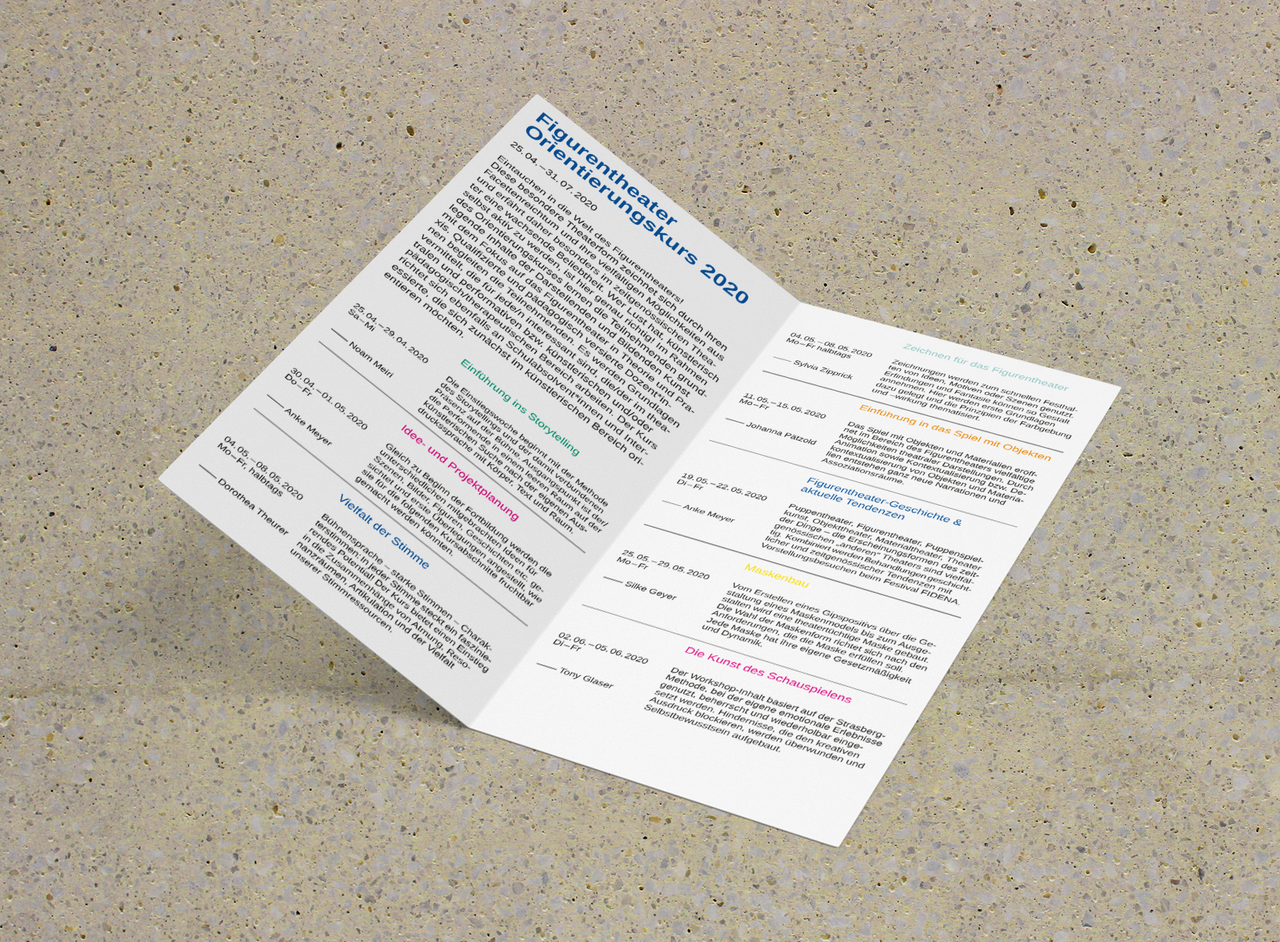 Entwicklung und Umsetzung eines Erscheinungsbildes für das Programm des Figurentheater-Kollegs Bochum. Konzept, Gestaltung und Umsetzung, freie Aufträge